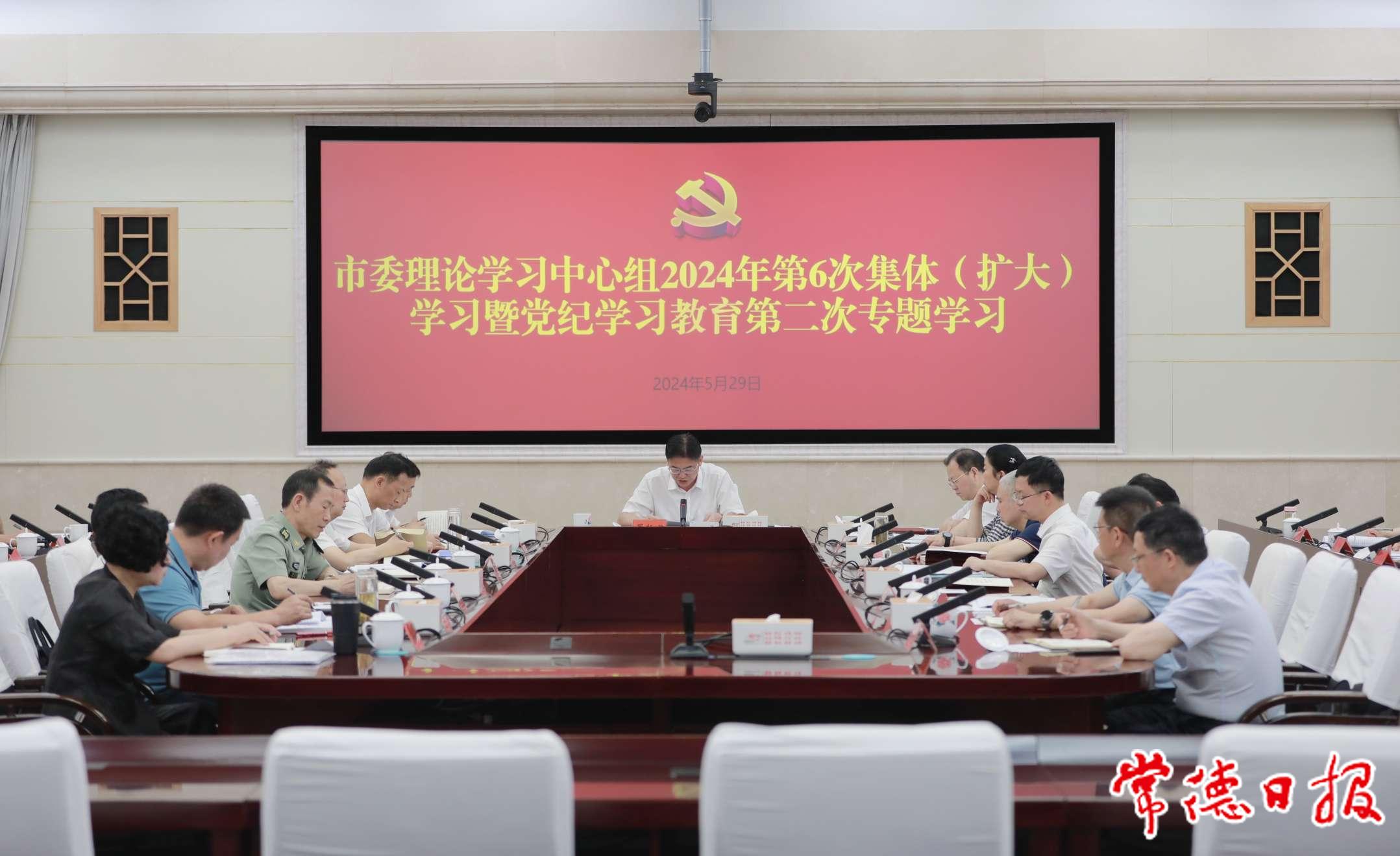 常德日報記者 王自來 文/圖 5月29日,市委理論學習中心組開展2024年第6次集體(擴大)學習暨黨紀學習教育第二次專題學習,深入學習貫徹習近平總書記關于黨紀學習教育重要講話和指示精神,持續(xù)深研細讀《中國共產黨紀律處分條例》,引領全市上下更好學紀知紀明紀守紀,為加快建設社會主義現代化新常德提供堅強紀律保障。市委書記羅毅君主持學習并作總結講話。市委副書記、市長周振宇作交流發(fā)言。