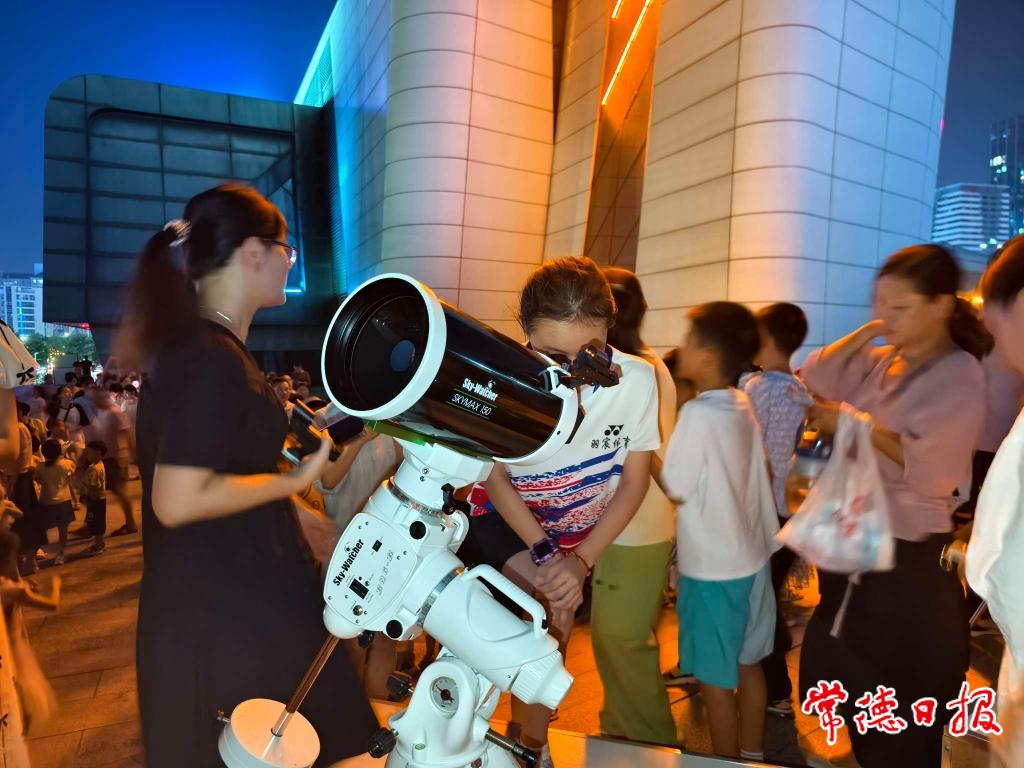 常德日報記者 江一舟 通訊員 譚菲兒 文/圖 9月8日晚,市科技館天文臺公開觀測活動在白馬湖文化公園啟幕,吸引了線上線下近2000名天文愛好者參與,讓這場“與月亮的對話”活動成為全民共賞的科普盛宴。