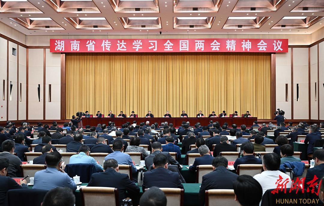 3月12日,湖南省傳達(dá)學(xué)習(xí)全國(guó)兩會(huì)精神會(huì)議在長(zhǎng)沙召開。省委書記、省人大常委會(huì)主任沈曉明出席會(huì)議并強(qiáng)調(diào),要深入學(xué)習(xí)宣傳貫徹全國(guó)兩會(huì)精神特別是習(xí)近平總書記重要講話精神,扛牢經(jīng)濟(jì)大省挑大梁的責(zé)任擔(dān)當(dāng),堅(jiān)定不移推動(dòng)全國(guó)兩會(huì)精神在湖南落地見效。省委副書記、省長(zhǎng)毛偉明主持,省政協(xié)主席毛萬春出席。