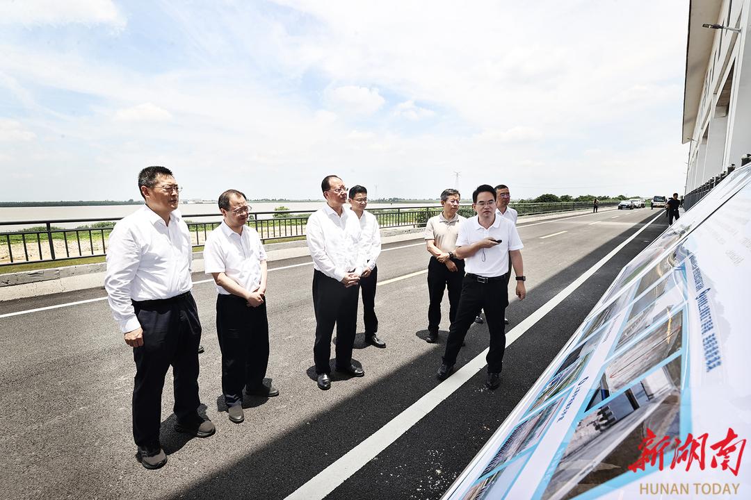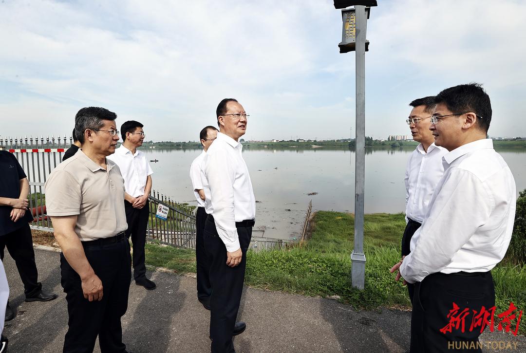 (毛偉明在漢壽縣圍堤湖分洪閘調(diào)研。)