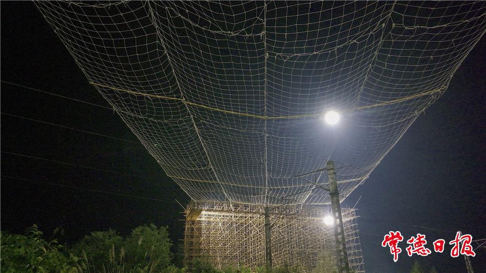 “90分鐘‘窗口期’,必須安全高效完成任務(wù)!”項(xiàng)目經(jīng)理唐世奇的聲音穿透夜色。隨著指令下達(dá),十余名“蜘蛛人”迅速攀上跨越架。只見,機(jī)動(dòng)絞磨機(jī)的嗡鳴劃破寂靜,一張1200多平方米的巨型安全大網(wǎng)從鐵路北邊跨越架上緩緩地拉向南邊另一端。地面上,安全員緊盯每一個(gè)環(huán)節(jié);高空中,作業(yè)人員隨著防護(hù)網(wǎng)的延伸精準(zhǔn)操作。