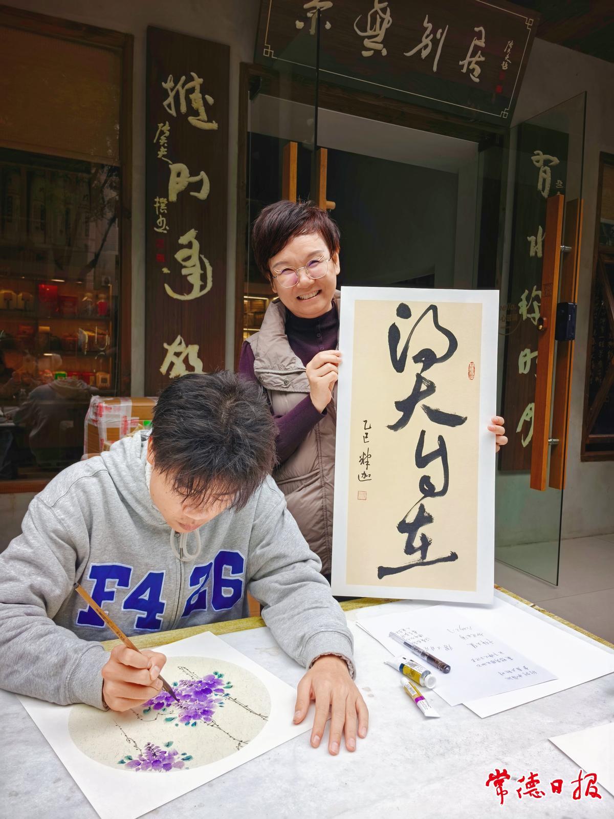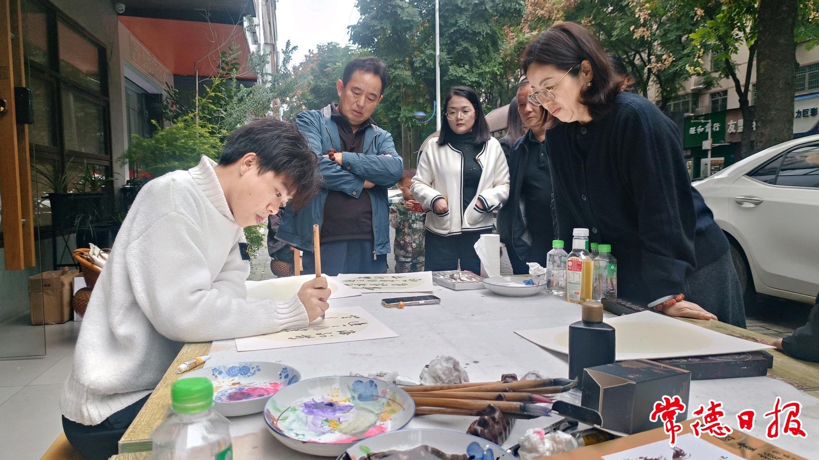 作為從漢壽走出的“書畫神童”,曾釋迦6歲便展露過(guò)人天賦,年少時(shí)便師從倪繼周、孫于翔等書畫名家,10歲斬獲全國(guó)書法特等獎(jiǎng),更以“美德少年”之名長(zhǎng)期深耕公益領(lǐng)域。活動(dòng)中,他不顧筆墨辛勞,為排隊(duì)市民量身創(chuàng)作,當(dāng)天共送出百余幅書畫作品。拿到定制牡丹國(guó)畫作品的市民王女士感慨:“既能品到石門銀峰的甘醇,又能收獲免費(fèi)的藝術(shù)佳作,這場(chǎng)活動(dòng)讓傳統(tǒng)文化變得可感可及。”