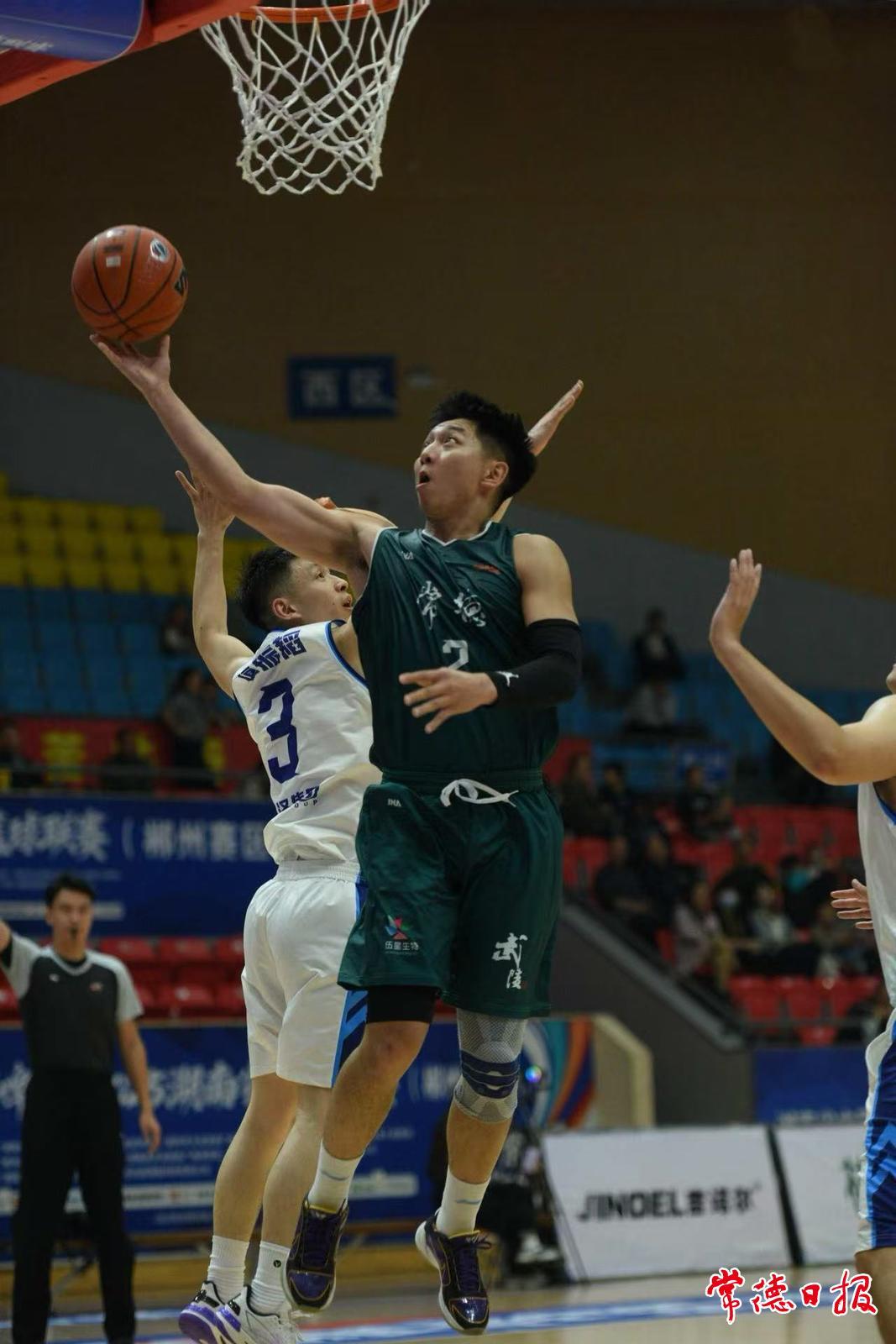 在小組賽收官戰(zhàn)中,隊(duì)員們迎戰(zhàn)湘西。雙方上演了一場精彩的三分球?qū)ゴ髴?zhàn),常德隊(duì)陳子安還奉獻(xiàn)了一記精彩的扣籃,將現(xiàn)場氣氛推向高潮。