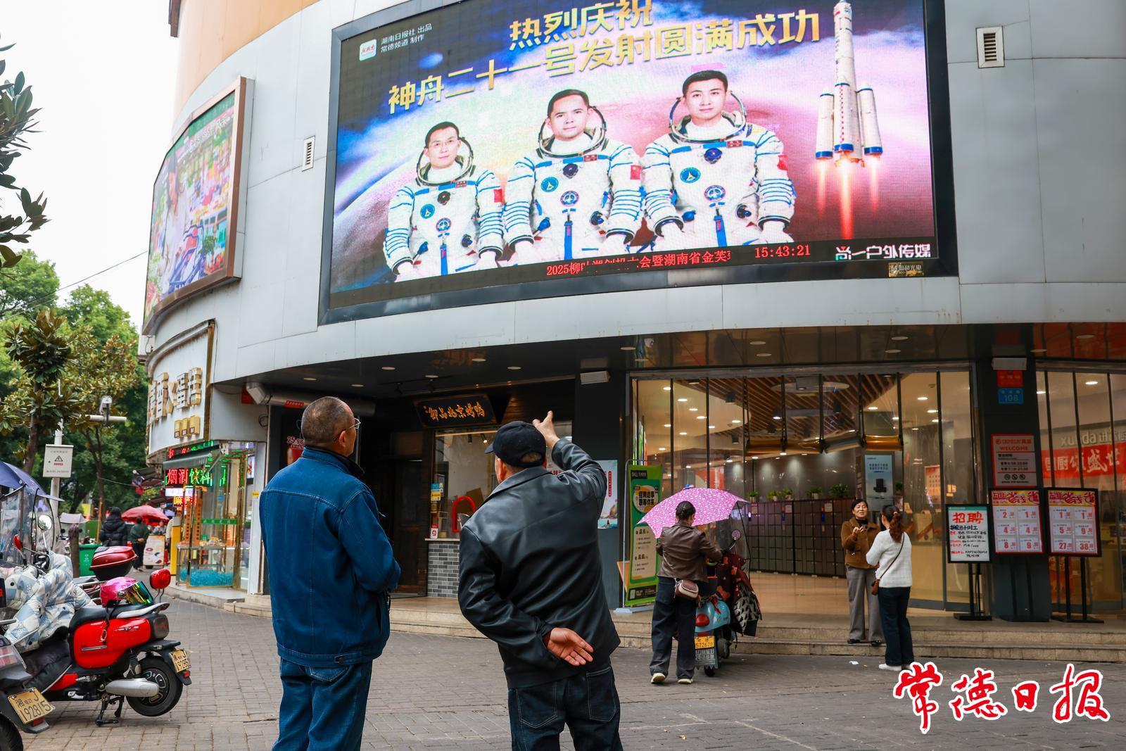 10月31日,常德漢壽籍航天員張陸作為神舟二十一號(hào)航天員乘組指令長,再度出征太空。連日來,常德各商圈、學(xué)校、市直單位的大屏都定時(shí)播放著“熱烈慶祝神舟二十一號(hào)發(fā)射圓滿成功”的海報(bào),家鄉(xiāng)人民都為張陸的“二飛”太空而激動(dòng)自豪。