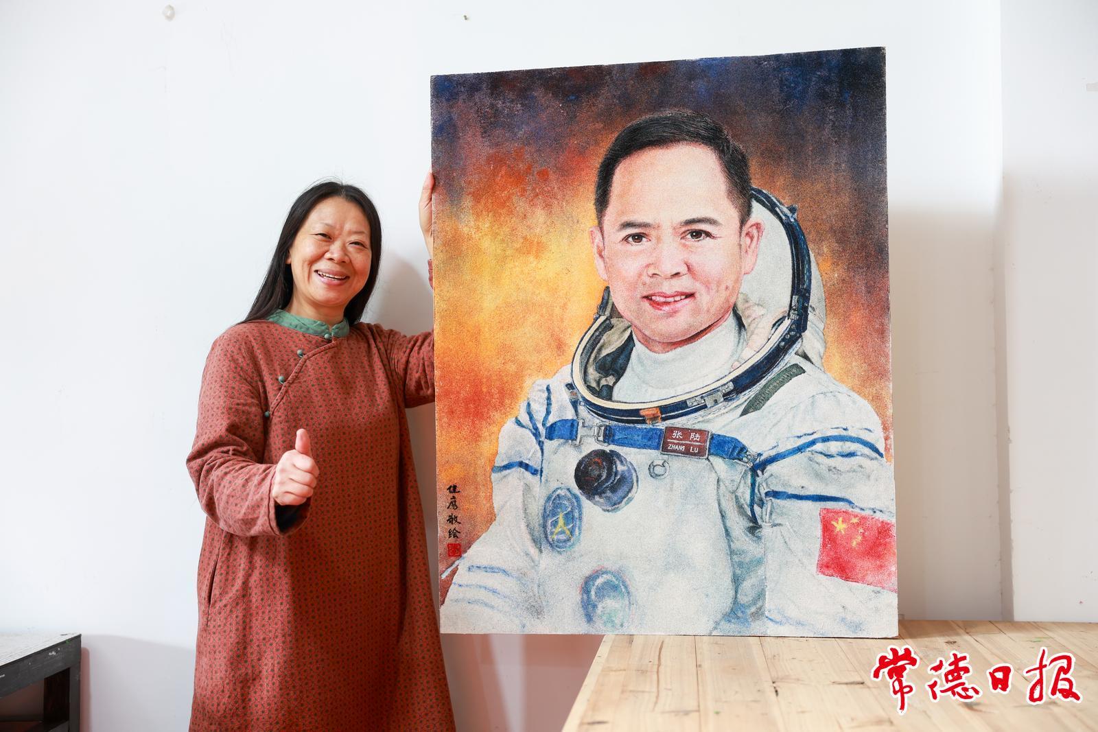 在位于常德河街的工作室里,非遺項(xiàng)目李氏藝術(shù)麻質(zhì)畫代表性傳承人李健鷹以麻質(zhì)畫的形式,精心繪制了一幅張陸的肖像,表達(dá)對(duì)英雄航天員的敬意。常德麻質(zhì)畫以麻布為載體,以天然黃麻纖維設(shè)色,通過手撒麻纖維于麻布上繪制而成。李健鷹動(dòng)情地說:“畫作的每一寸纖維,都浸潤著洞庭湖的靈氣,蘊(yùn)藏著湖湘的風(fēng)骨?!闭鐝堦懙拿恳淮纬稣鳎瘸休d著故土的深深期盼,也肩負(fù)著民族的浩瀚夢(mèng)想——在家鄉(xiāng)的守望與星海的遠(yuǎn)征之間,一種跨越天地的心靈共鳴,正激勵(lì)著更多常德兒女勇敢追夢(mèng)、向上攀登。