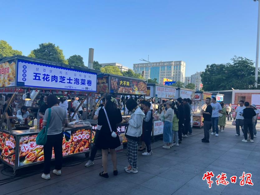 從長沙來常德旅游的李澤利一家在萬達(dá)廣場(chǎng)附近一家酒店住宿,這幾天,星光夜市成為一家人頻頻打卡的地方。“孩子就喜歡吃這些小吃,我看這里人來人往的,衛(wèi)生狀況也蠻好,還比較放心,就滿足下她的小心愿?!?/p>