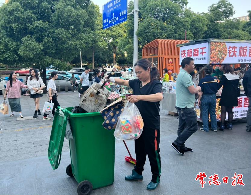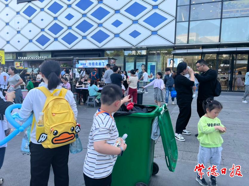 常德日?qǐng)?bào)記者 李紫瑩 李雪芹 文/圖 5月1日晚6時(shí)許,常德萬達(dá)廣場(chǎng)的星光夜市人頭攢動(dòng),市民游客邊逛邊吃的同時(shí),不忘將垃圾丟進(jìn)垃圾桶,文明旅游儼然已成共識(shí)。