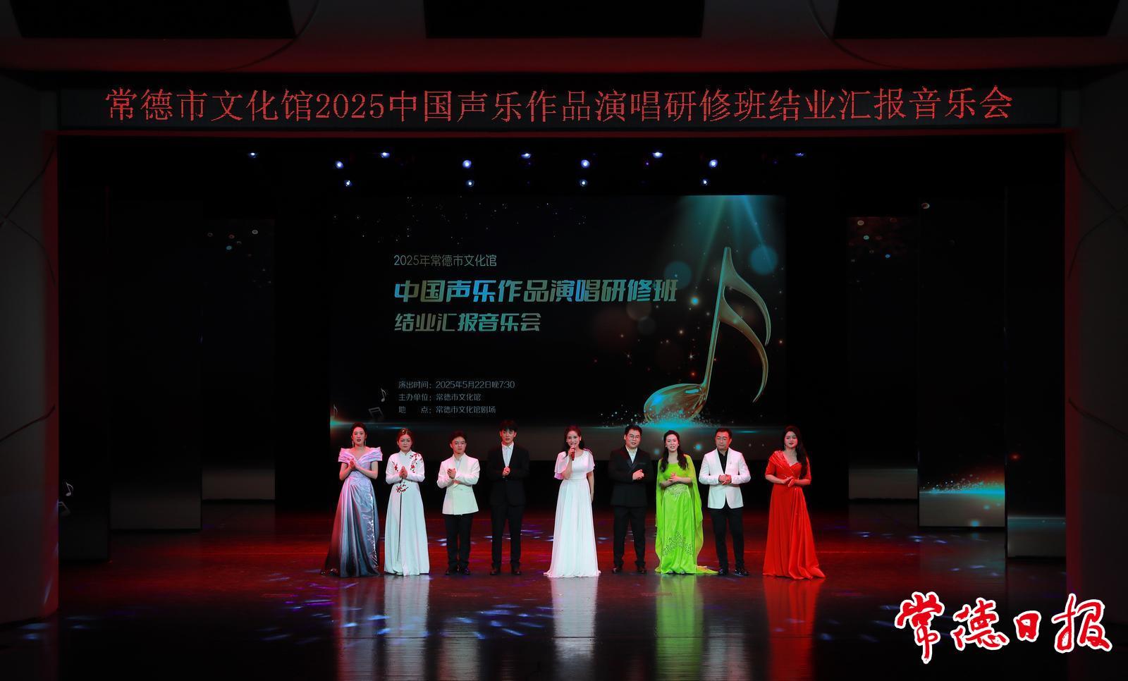 常德日?qǐng)?bào)記者 馮順前 通訊員 劉禮德 張揚(yáng) 文/圖 5月22日晚,常德市文化館劇場(chǎng)內(nèi)座無(wú)虛席,常德市文化館2025中國(guó)聲樂作品演唱研修班結(jié)業(yè)匯報(bào)音樂會(huì)在此震撼上演。女高音歌唱家王相周攜手培訓(xùn)班優(yōu)秀學(xué)員,以精心籌備的演出展示教學(xué)成果,用動(dòng)人歌聲和精湛技藝,為在場(chǎng)觀眾獻(xiàn)上了一場(chǎng)難忘的藝術(shù)之旅。